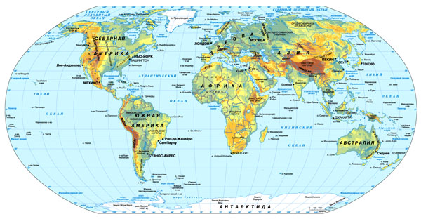 Подробная карта высот Мира на Русском. Мир — детальная карта высот.