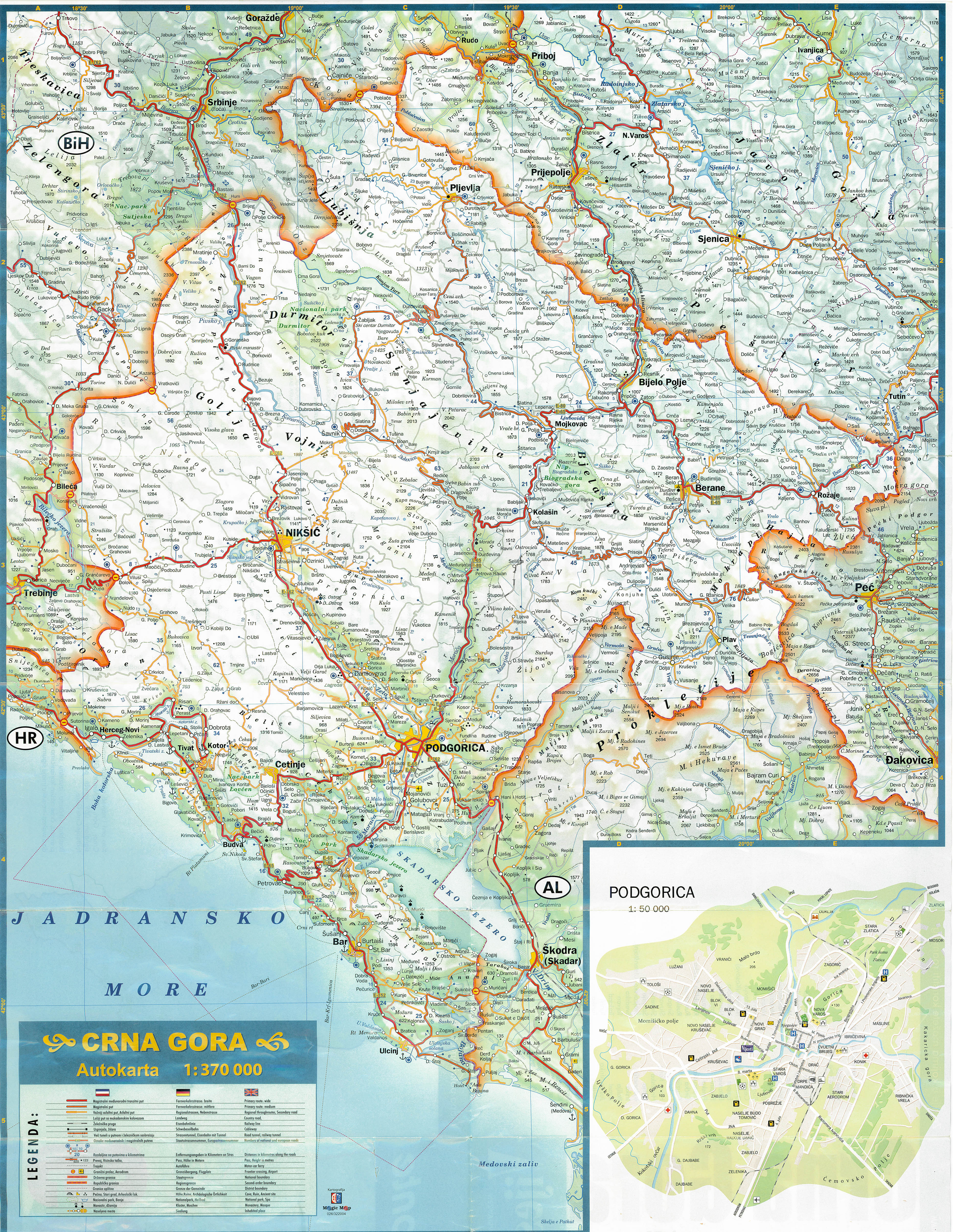 Карта Черногории. Подробная карта автодорог Черногории. Все города Черногории на карте. Большая карта автомобильных дорог Черногории. Бесплатно скачать подробную карту автомобильных дорог Черногории.