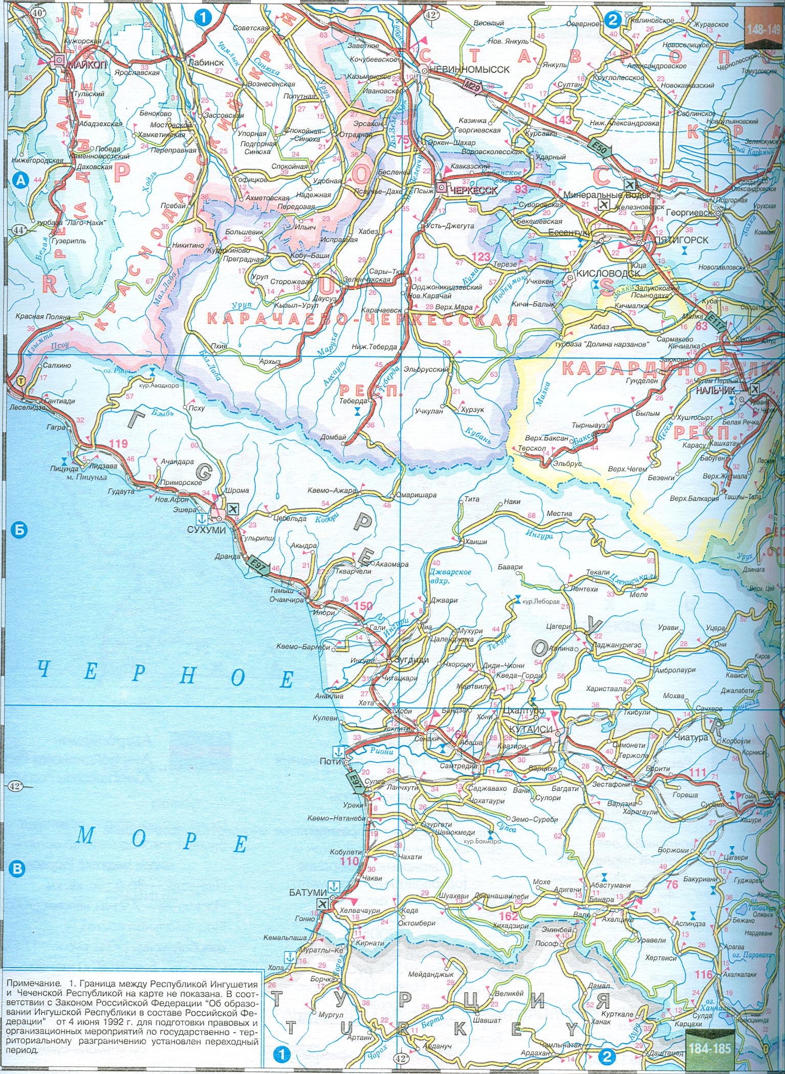 Карта автодорог Грузии. Атлас автомобильных дорог СНГ. Карта Грузии масштаба 1см = 17,5км