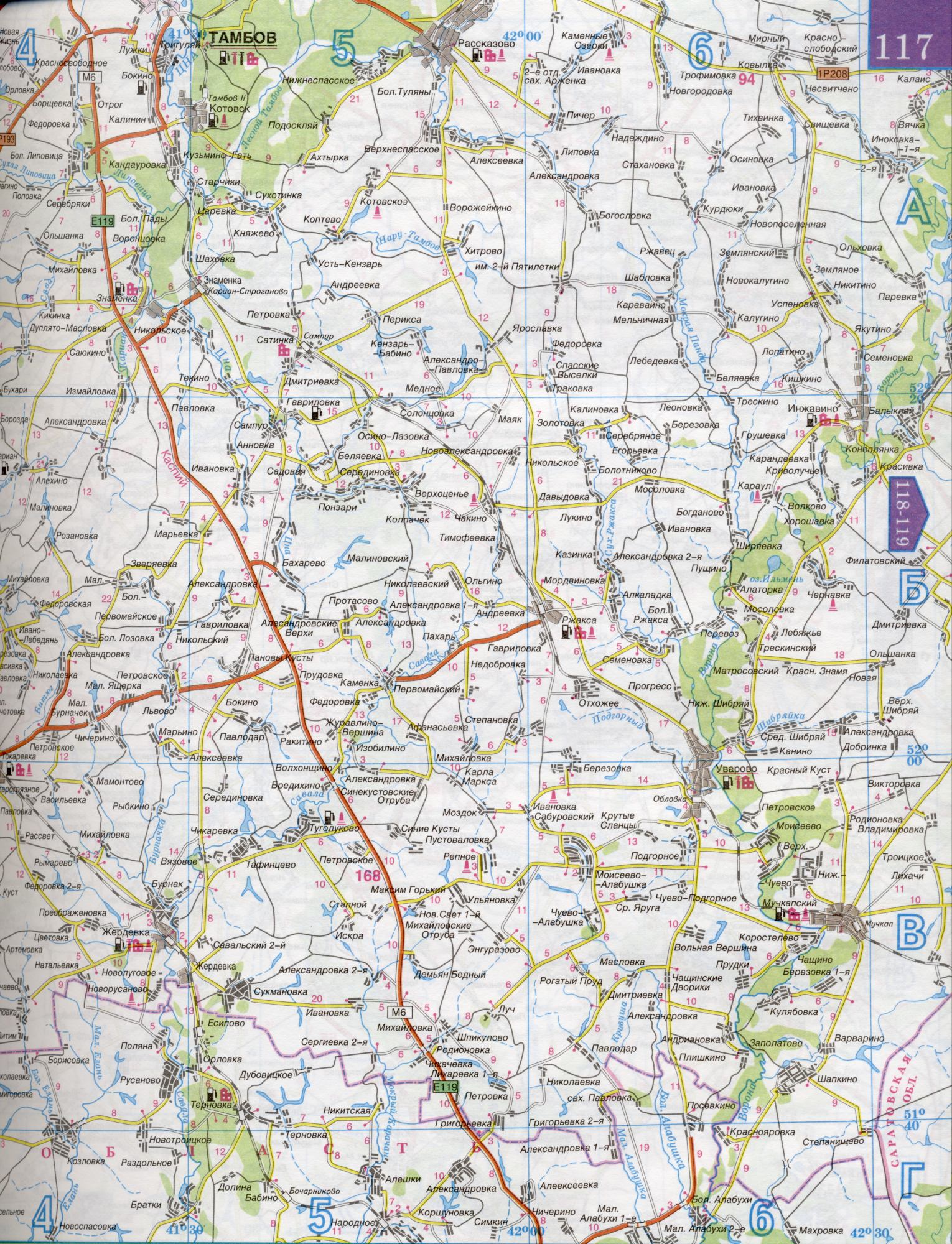 Карта Тамбовской области 1см = 5км. Карта автомобильных дорог Тамбовская область