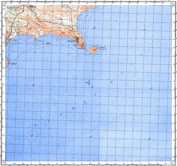 Топографическая карта Коктебель-Орджоникидзе. Подробная топографическая карта масштаба 1:50 000. Бесплатно скачать подробную карту Коктебель-Орджоникидзе.