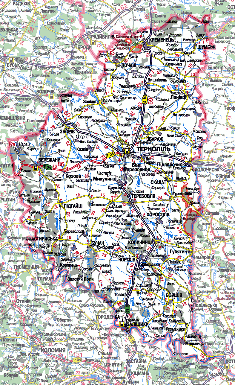Тернопольская область. Карта транспортного сообщения Тернопольской области. Подробная карта автодорог. Границы Тернопольской области. Все населенные пункты. Бесплатно скачать подробную карту автодорог Тернопольской области.
